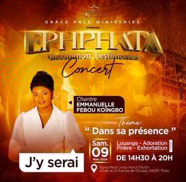 EPHPHTA "Uncommon Testimonies" Concert était un moment riche de la présence de Dieu où la chantre Emmanuelle Febou Koïngbo était invitée. Ce concert a réunit plusieurs serviteurs et chantres de l'éternel, tous venu pour louer Dieu.