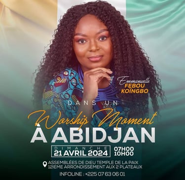 La chantre Emmanuelle Febou Koïngbo était l'invitée d'un moment intense dénommé "Worship Moment". En effet, c'est à Abidjan que s'est tenu cet événement dans une atmosphère d'adoration. Revivez le sur ces différents réseaux.