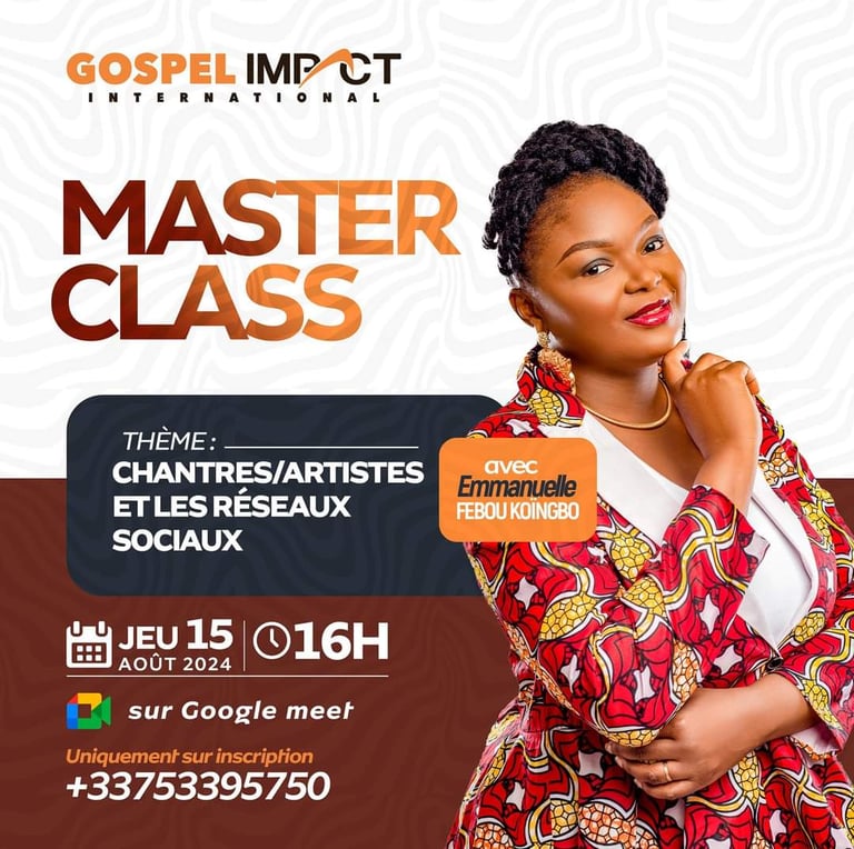 Sous la thématique "Chantres/Artistes et réseaux sociaux", Emmanuelle Febous Koïngbo a animé une master class riche et instructive. Pour tous ceux qui on manqué celle-ci, restez connectés sur ces réseaux pour la prochaine